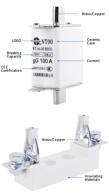 अनुकूलित कम भोल्टेज NT00 AC 160A 500/690V उच्च ब्रेकिङ सिरेमिक ब्लेड फ्यूज होल्डर