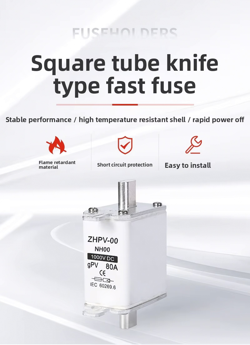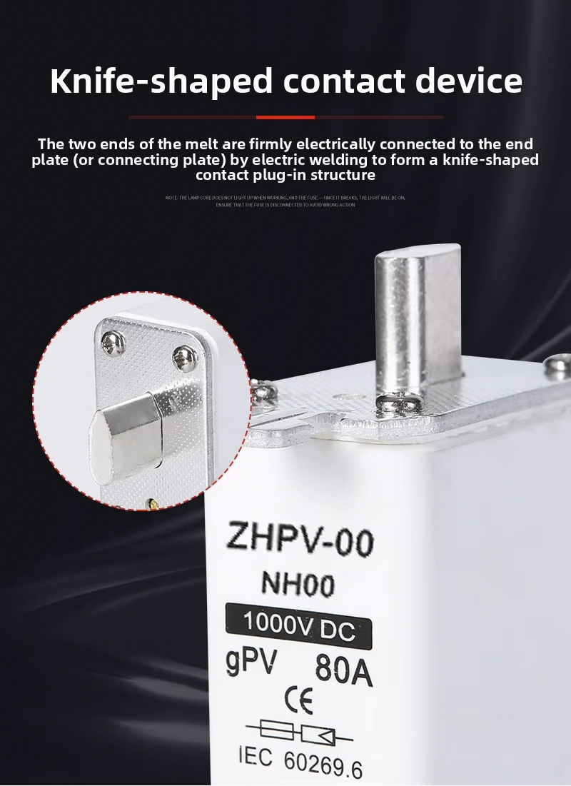 NH00-1000V IEC कम भोल्टेज फोटोभोल्टिक नाइफ फ्यूज प्लास्टिक 80A 6ka ब्रेकिङ क्षमता