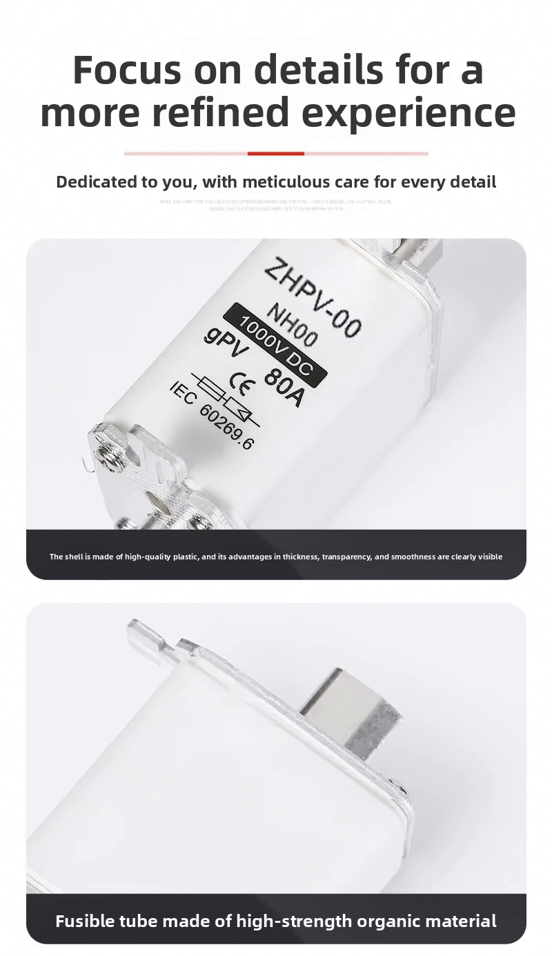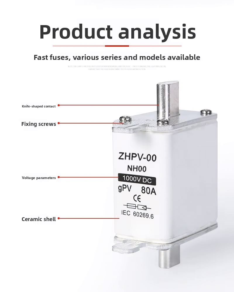 NH00-1000V IEC कम भोल्टेज फोटोभोल्टिक नाइफ फ्यूज प्लास्टिक 80A 6ka ब्रेकिङ क्षमता फोटोभोल्टिक प्रणाली र अन्य कम भोल्टेज अनुप्रयोगहरूमा कुशल र भरपर्दो सर्किट सुरक्षाको लागि डिजाइन गरिएको हो। यो उच्च गुणस्तरको फ्यूजले 1000V सम्म काम गर्छ, 6ka को बलियो ब्रेकिङ क्षमताको साथ, ओभरलोड वा सर्ट सर्किटको अवस्थामा सुरक्षित विच्छेदन सुनिश्चित गर्दछ। यसको 80A रेटेड वर्तमानले यसलाई विभिन्न PV स्थापनाहरू र औद्योगिक नियन्त्रण प्यानलहरूको लागि उपयुक्त बनाउँछ।