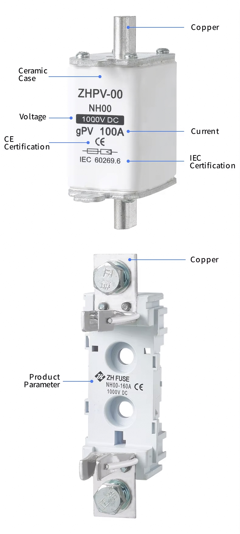 NH00 फोटोभोल्टिक प्रणाली DC 1000V 32~ 100A फ्यूज लिङ्क