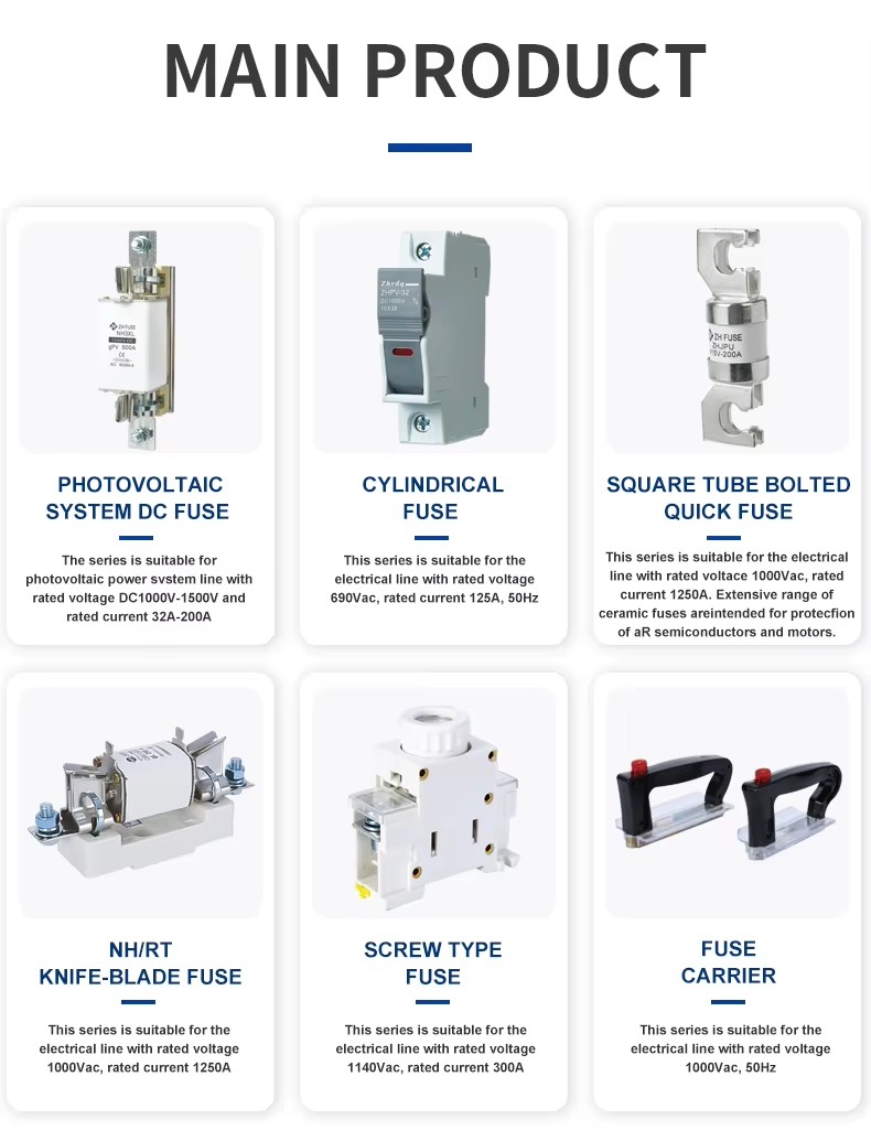Zhpv-12515 1000W DC फ्यूज फ्यूज बेन्स सामान्य र व्यावसायिक अनुप्रयोगहरूमा सर्किट संरक्षणको लागि प्रयोग गरिन्छ।